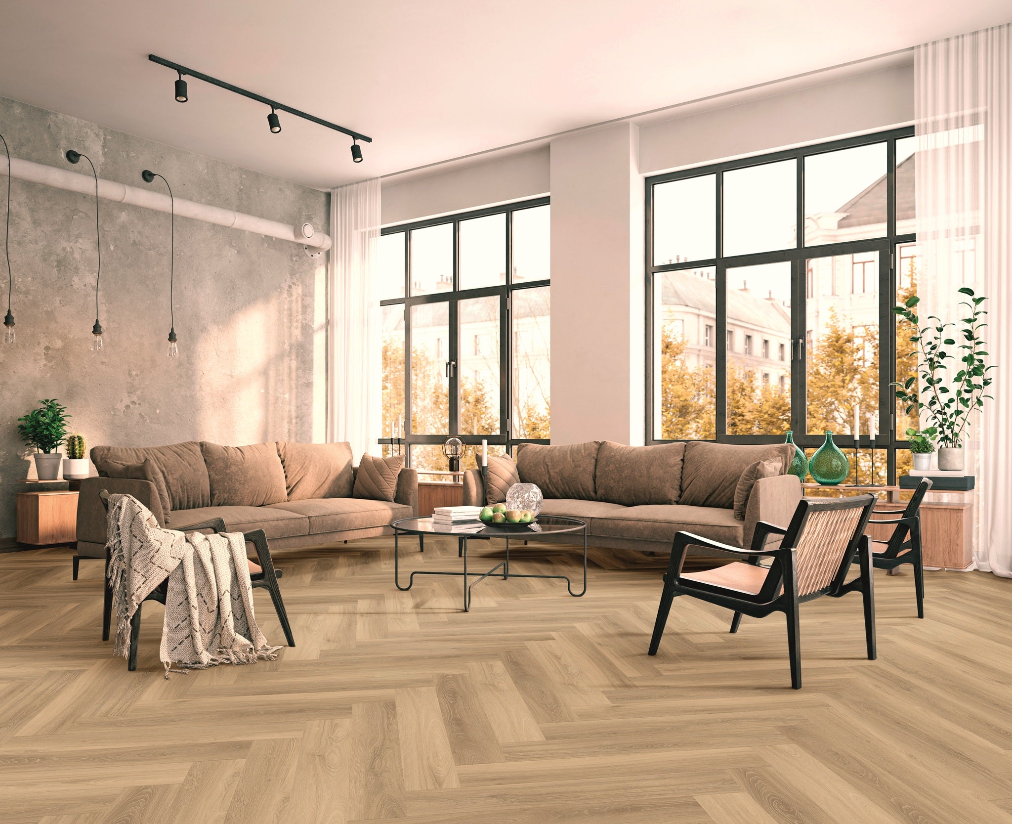 TreeFloor Enia Strix Herringbone Flooring Oak Sand PVC Dryback